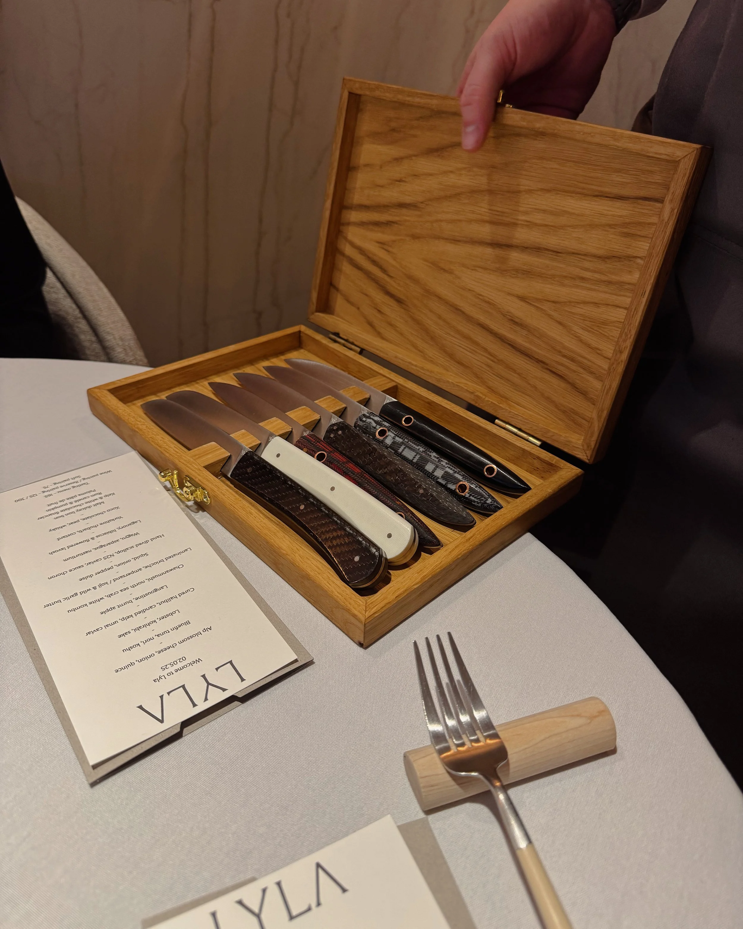 One of our favorite travel traditions is to end the first day of our trip with an excellent meal. And Lyla was the perfect spot to kick off our time in Edinburgh. A Michelin star dining experience, Lyla offers a ten course menu served in an intimate dining room. With just a handful of tables and an open kitchen layout, dining at Lyla feels more like you’re at a friend’s dinner party, rather than a stuffy dining experience. The menu is more seafood heavy, with most ingredients sourced from the UK’s top farms and growers. The staff was friendly and informative, often taking the time to explain more nuanced elements of the dishes. A highlight of our evening - selecting from a box of custom steak knives for the meat course. If you can secure a reservation at Lyla during your visit, I’d highly recommend it.